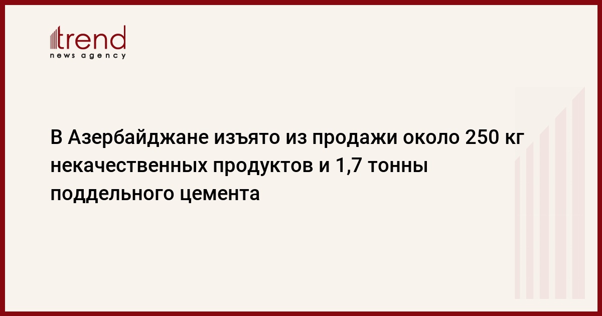 Госслужба также провела мониторинги в городе Сумгайыт, где в одном из пунктов продажи строительных материалов было выявлено и изъято из продажи 1,7 тонны поддельного цемента.