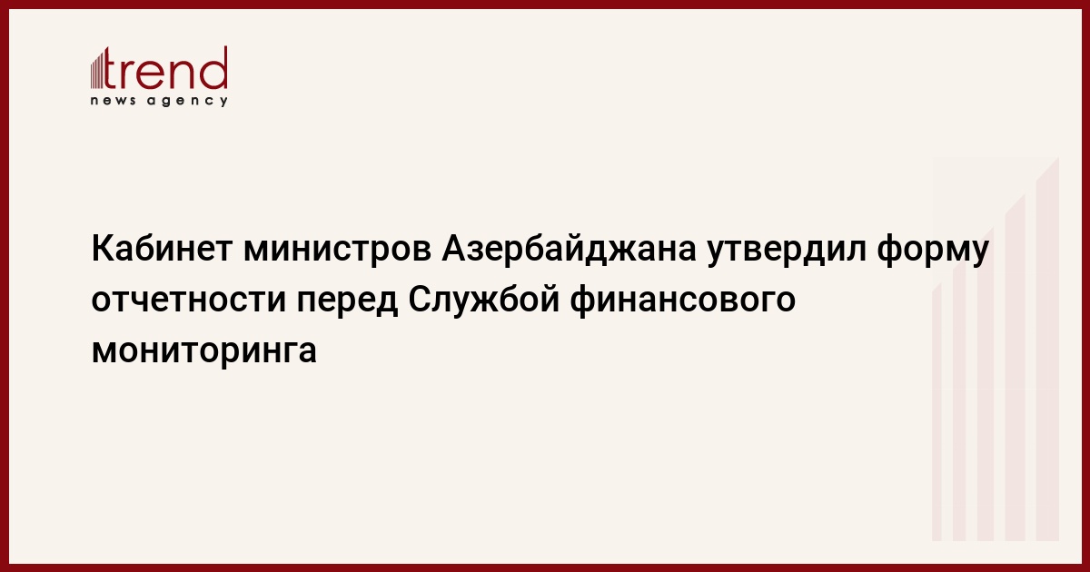 Кабинет министров Азербайджана утвердил форму отчетности перед Службой финансового мониторинга при Центральном банке о ввозе и вывозе валютных средств из страны, говорится в сообщении Кабинета министров.