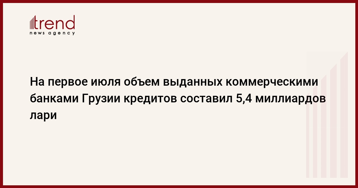 Объем кредитования коммерческих банков Грузии по состоянию на первое июля составляет 5,4 миллиардов лари (1 доллар = 1,679 лари). Как сообщили в Нацбанке Грузии, этот показатель на 36,6 миллионов ниже показателя на первое июня, в процентном соотношении он сократился на 0,7 пунктов.