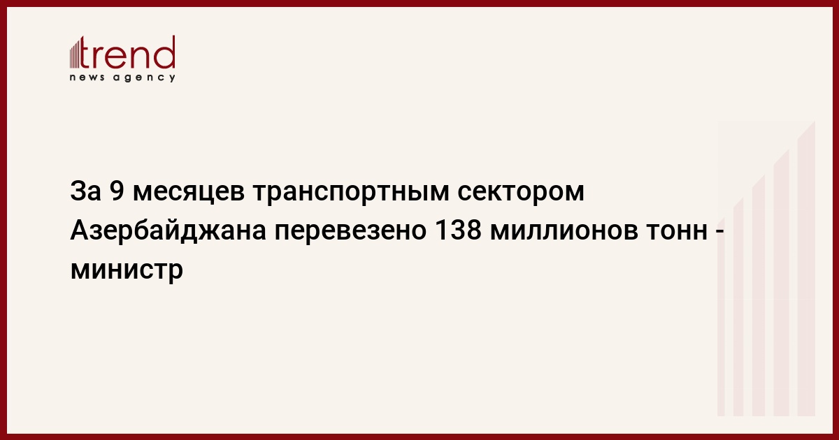 В январе-сентябре транспортным сектором Азербайджана перевезено 138 миллионов тонн грузов, сказал в пятницу министр транспорта Зия Мамедов, выступая на расширенном заседании Кабинета Министров, посвященном итогам социально-экономического развития за девять месяцев 2009 года, проведенном под председательством Президента Азербайджана Ильхама Алиева, передает государственное агентство АзерТАдж.