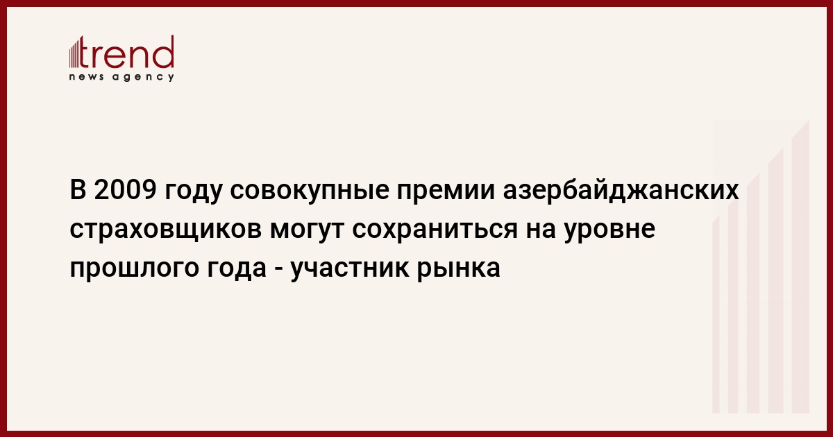 Совокупный объем премий всех страховых компаний Азербайджана по итогам 2009 года может сохраниться на уровне показателя 2008 года, сказал во вторник председатель правления ассоциации страховщиков Азербайджана, председатель правления СК Atesgah Азер Алиев.
