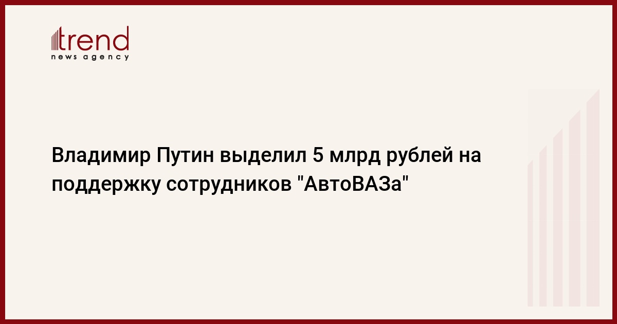 Владимир Путин выделил 5 млрд рублей на поддержку сотрудников "АвтоВАЗа"