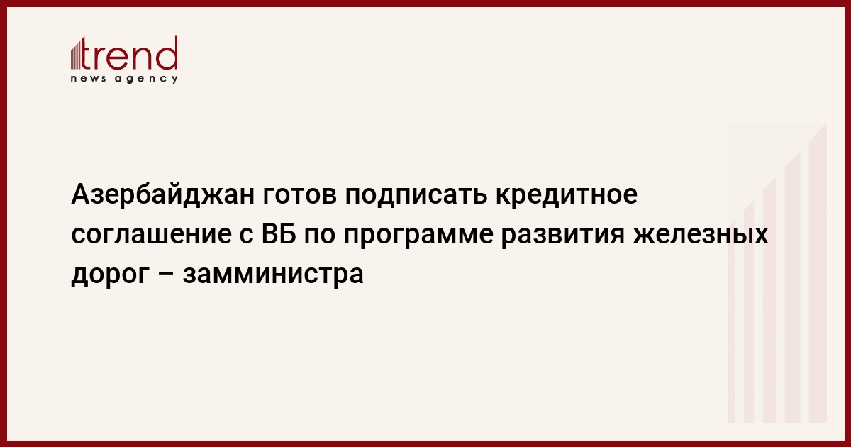"Были некоторые задержки в связи с обсуждениями с Всемирным банком вопроса реструктуризации железнодорожной системы. [...] Все документы подготовлены, мы готовы подписать кредитное соглашение с Всемирным Банком ", - сказал Панахов спецкору Trend во вторник.