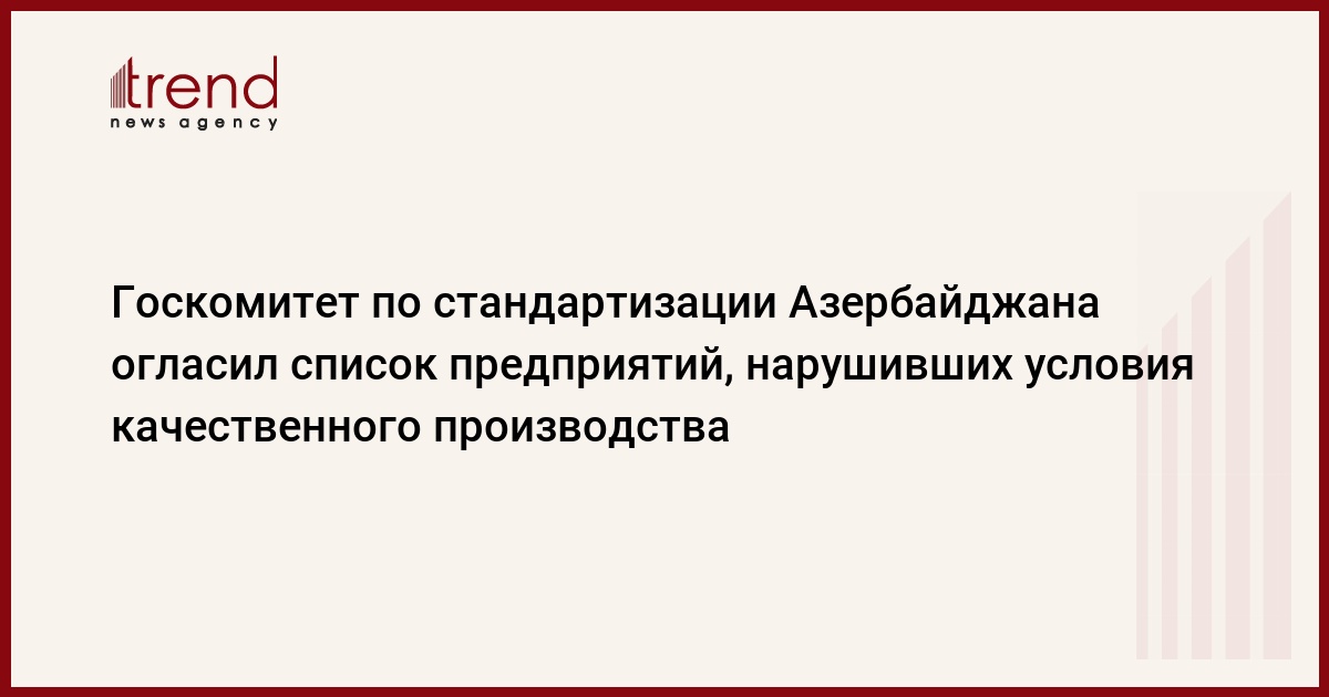 Государственный комитет по стандартизации, метрологии и патентам Азербайджана в ноябре с целью контроля за качеством продовольственных товаров провел мониторинг на 22 предприятиях, сообщили в пятницу в госкомитете.