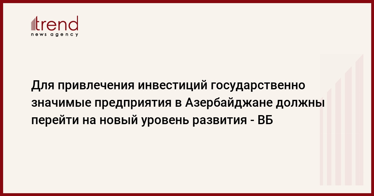 "У Азербайджана есть хорошие возможности для вхождения в группу стран с высоким и средним доходом, а для этого необходим рост прямых иностранных инвестиций в экономику страны, - сказал глава бакинского представительства ВБ Грегори Йеджейчак. - Экономика должна быть диверсифицирована, и стать привлекательной для иностранных капиталовложений".