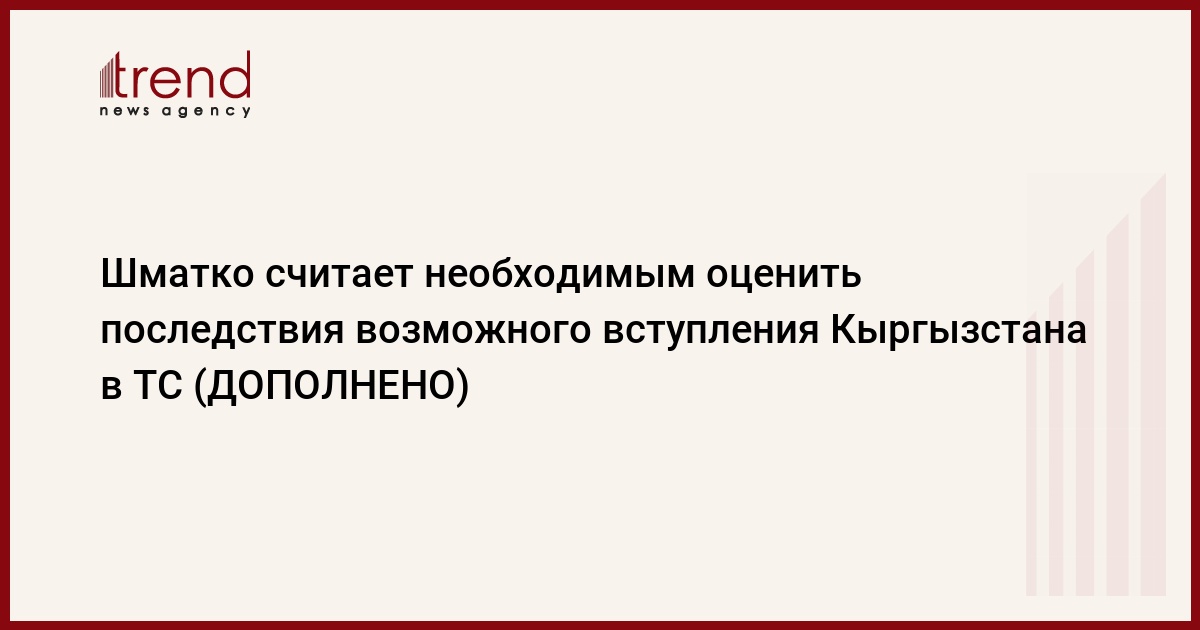 Глава Минэнерго РФ Сергей Шматко считает необходимым детально проанализировать последствия возможного вступления Киргизии в Таможенный союз России, Белоруссии и Казахстана, пишет РИА Новости.