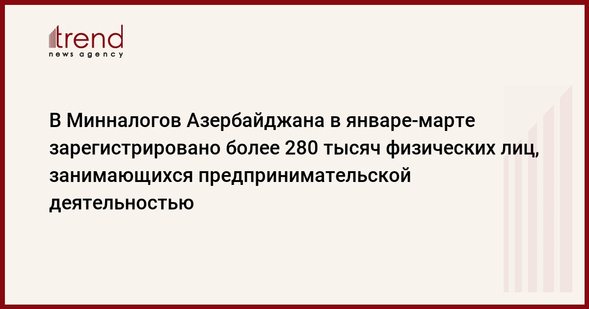 По состоянию на первое апреля на учет в налоговых органах встало более 281351 физических лиц, занимающихся предпринимательской деятельностью без создания юридического лица, сообщили во вторник в Государственном комитете по статистике Азербайджана.
