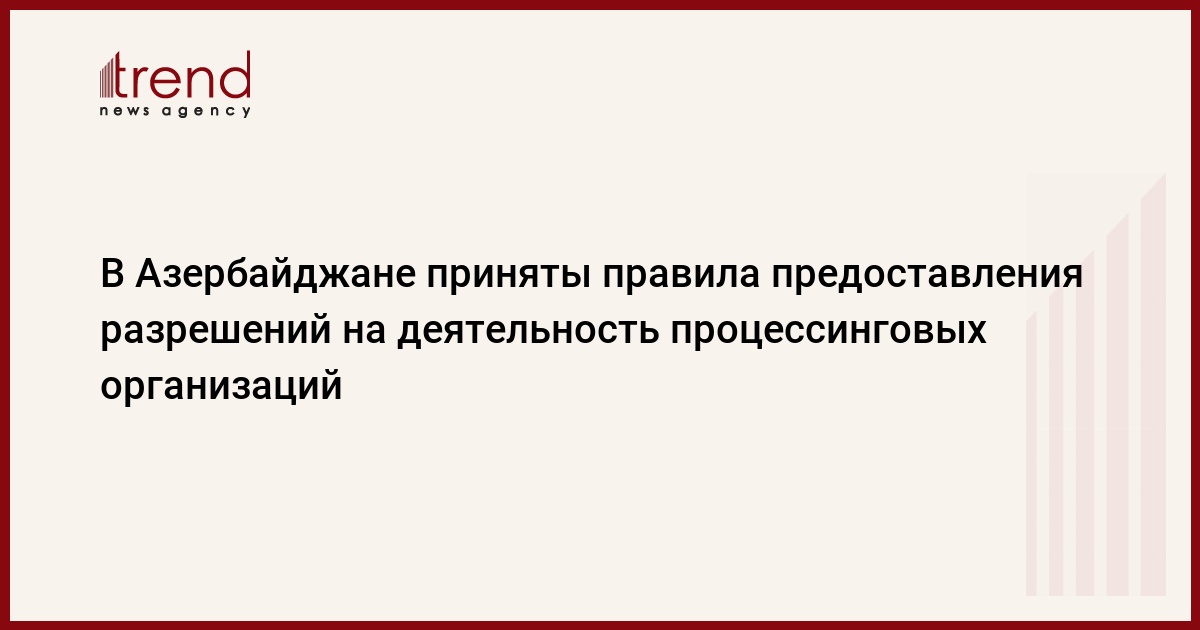 В Азербайджане приняты правила выдачи разрешений процессинговым организациям и контроля за процессинговой деятельностью, сказали в субботу в Центральном банке Азербайджана (ЦБА).
