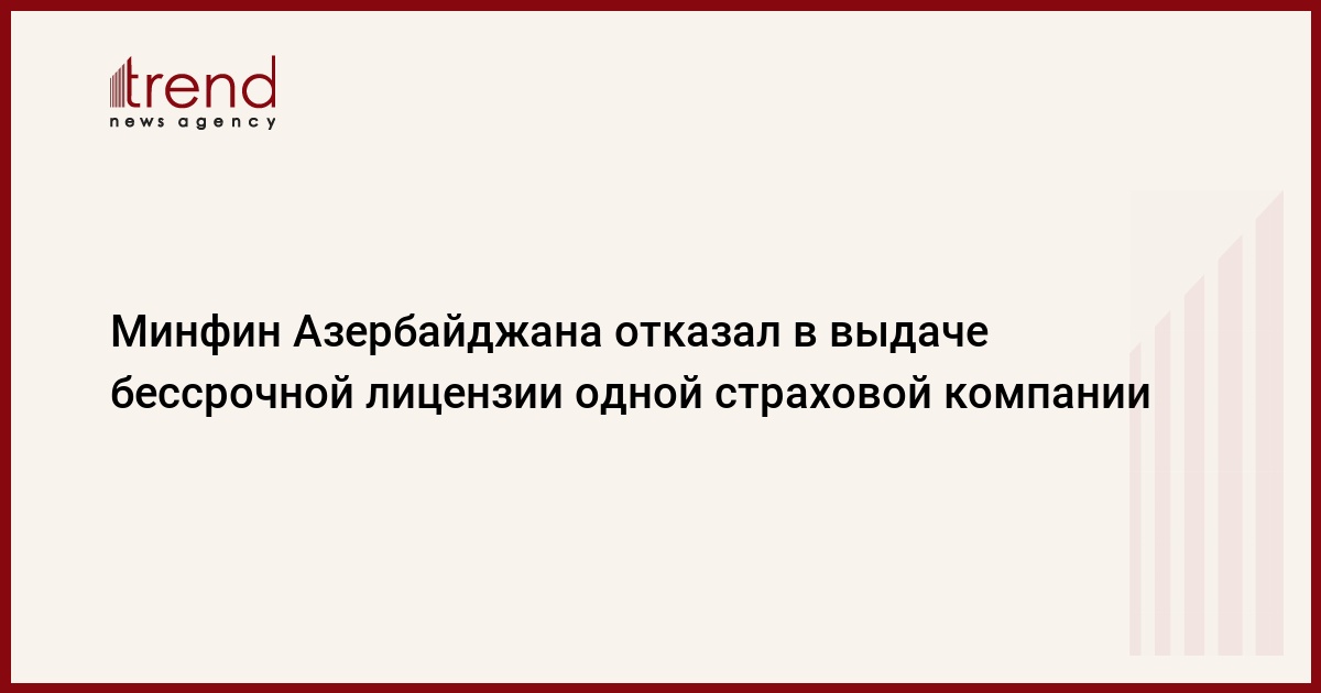 По решению министерства финансов Азербайджана было отказано в выдаче бессрочной лицензии на осуществление страховой деятельности ОАО "AzInvest Sigorta", сказали во вторник в министерстве.