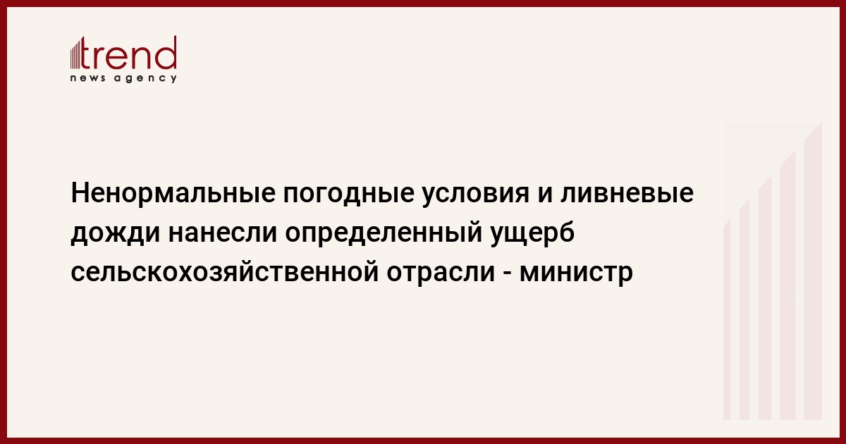 В последние месяцы ненормальные погодные условия и ливневые дожди в нашей стране нанесли определенный ущерб сельскохозяйственной отрасли в целом, в том числе растениеводству, плодоводству и животноводству, сказал министр сельского хозяйства Азербайджана Исмет Абасов на совещании под председательством президента Ильхама Алиева, на котором обсуждались вопросы ликвидации последствий стихийного бедствия, произошедшего в результате повышения уровня воды в реке Кура. Информацию об этом распространило государственное агентство АзерТАдж.