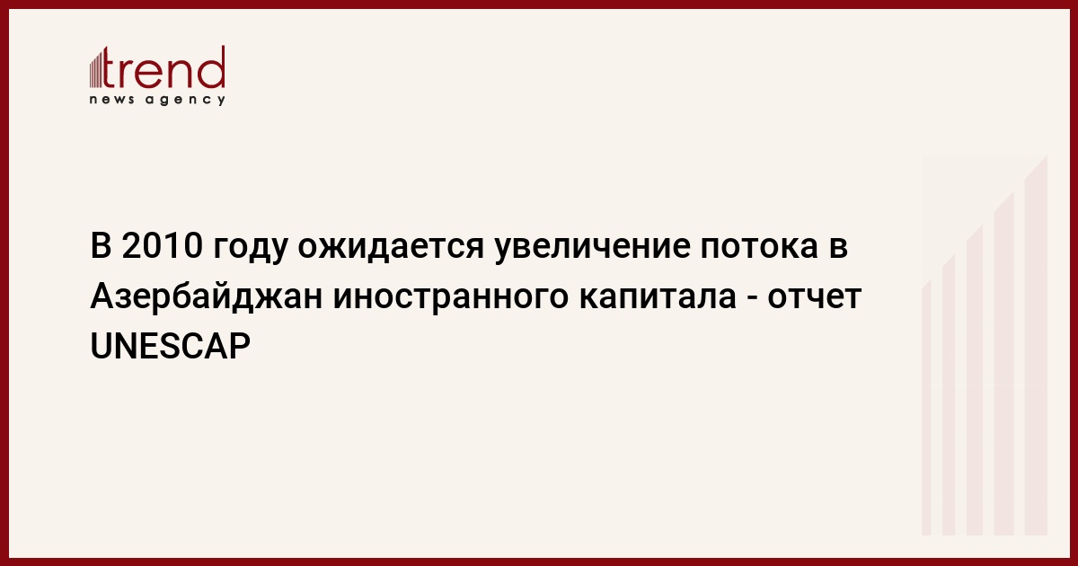 Ввиду восстановления процесса глобального развития в 2010 году ожидается увеличение потока в Азербайджан иностранного капитала.