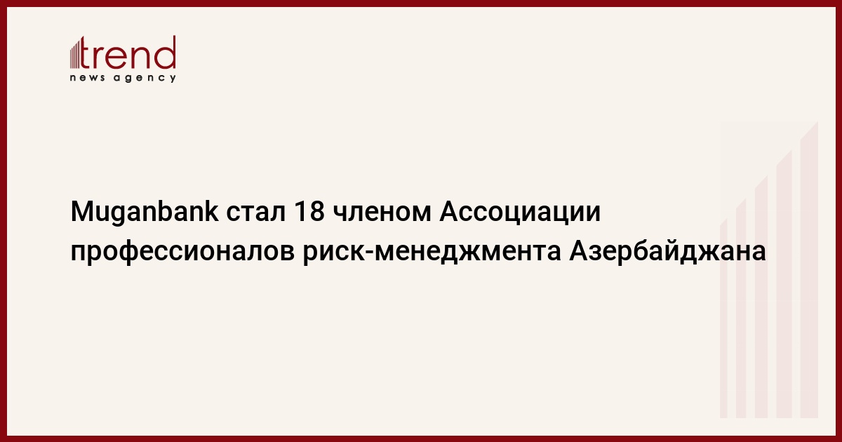 Азербайджанский Muganbank стал 18 корпоративным членом Ассоциации профессионалов риск-менеджмента Азербайджана (ARPA), говорится в сообщении ARPA, распространенном в пятницу.