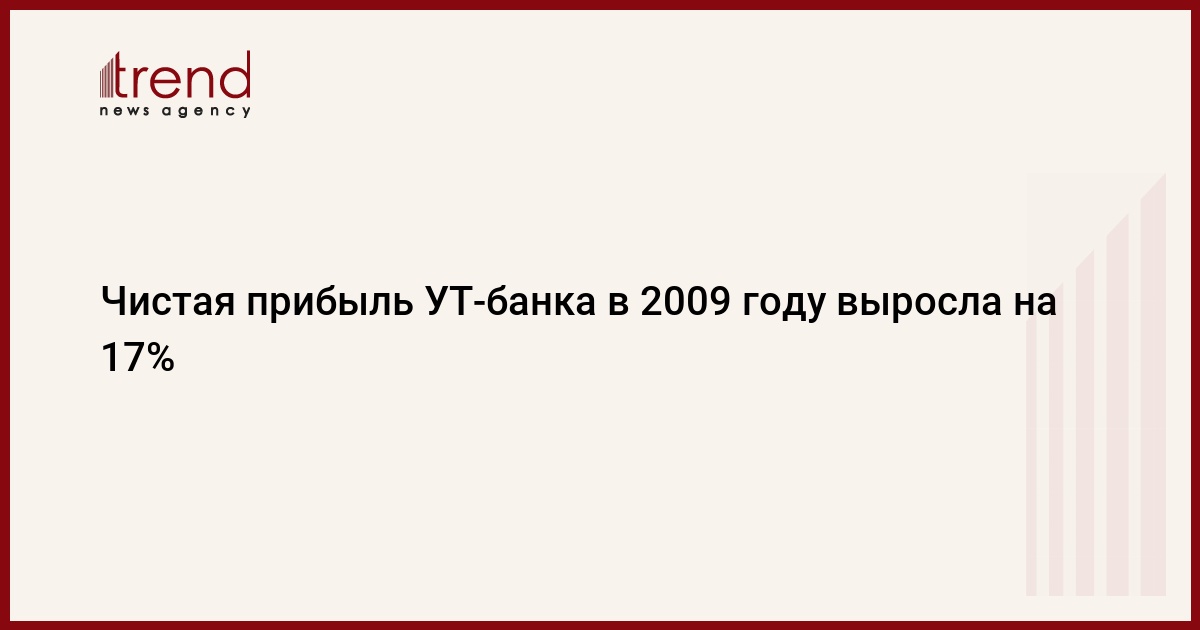 Чистая прибыль Узбекско-Турецкого банка (УТ-банк) в 2009 году выросла на 16,8 процентов - до 1,574 миллиарда сумов, сообщается в аудированном по международным стандартам финансовой отчетности (МСФО) балансовом отчете банка, опубликованном в официальной печати.
