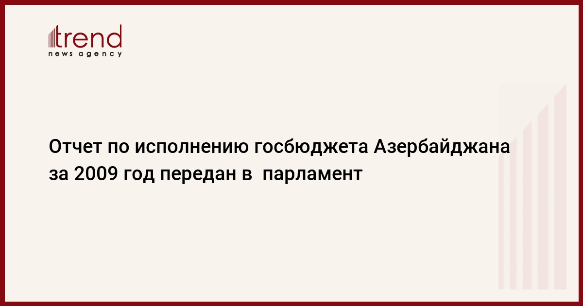 В парламент Азербайджана поступил проект отчета по исполнению государственного бюджета на 2009 год, сказали во вторник в парламентском комитете по экономической политике.