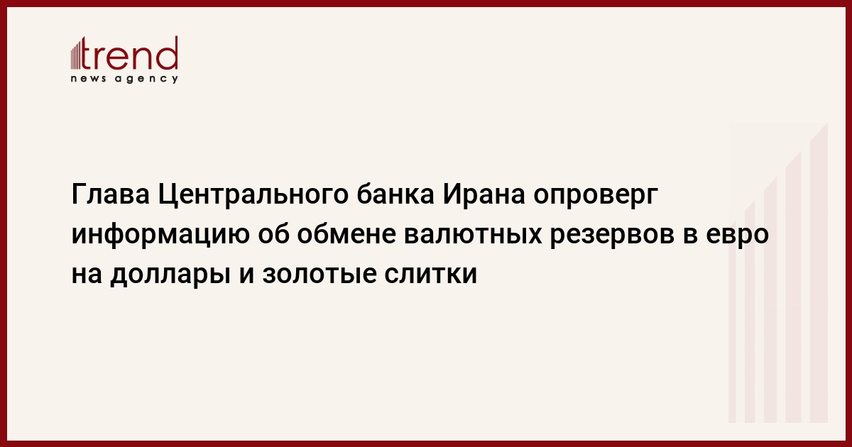 Глава Центрального банка Ирана Махмуд Бахмани категорически опроверг информацию об обмене валютных резервов, номинированных в европейской валюте, - 45 миллиардов евро на доллары и золотые слитки, распространенную некоторыми СМИ, сказав, что эти сведения не соответствуют действительности, сообщает агентство Fars.
