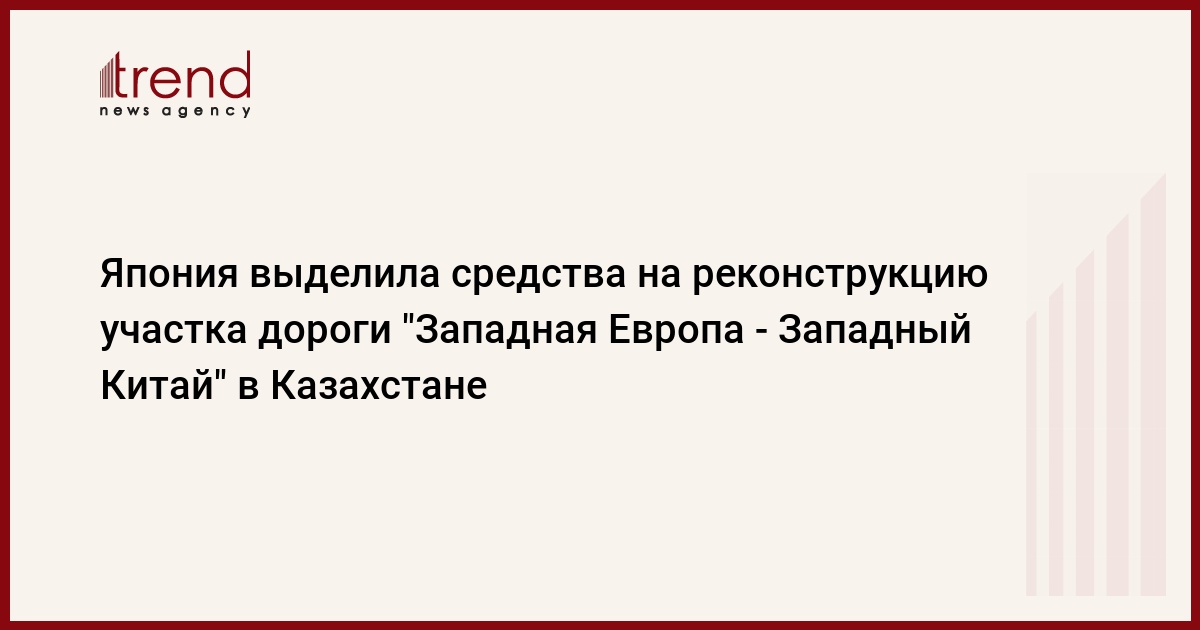 Япония предоставит Казахстану заем в размере 6,361 миллиардов японских йен (примерно 70 миллионов долларов) сроком на 25 лет для реконструкции участка автотранспортного коридора "Западная Европа - Западный Китай" в Жамбыльской области на участке Тараз - Кордай.