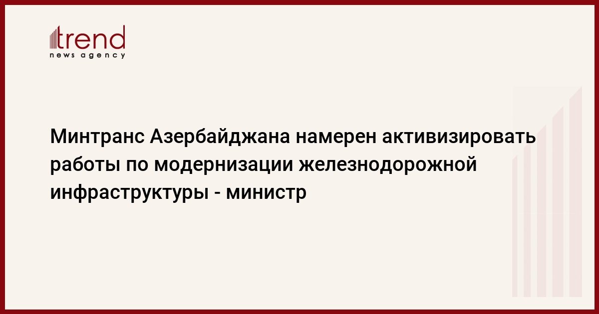 Министерство транспорта Азербайджана в конце этого - начале следующего года намерено активизировать деятельность в направлении реконструкции и модернизации железнодорожной инфраструктуры страны, сказал в среду министр транспорта Зия Мамедов.