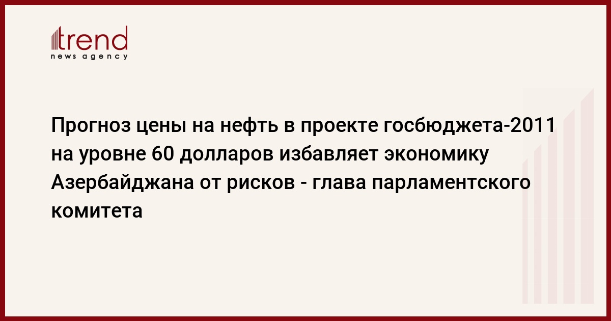 На фоне мировых процессов, изменчивости конъюнктуры мировых цен на нефть правительством Азербайджана прогноз цены, на основе которой сформированы прогнозы государственного бюджета и сводного бюджета на 2011 год, определен на уровне 60 долларов. В результате корректировки бюджетных прогнозов на 2010 год, цена на нефть также была увеличена с 45 до 60 долларов за баррель.