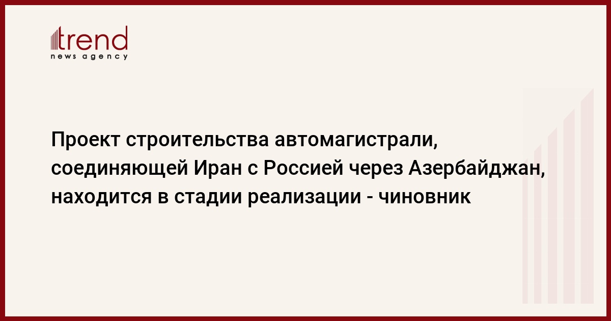 Иран и Россия подготовили все необходимые технические и экономические проекты для строительства автомагистрали, соединяющей иранский северный город Решт с Москвой через Азербайджан, сказал журналистам в воскресенье генерал-губернатор иранской провинции Северный Гилан Рухулла Гахрамани Чабок (Rouhollah Qahremani Chabok).