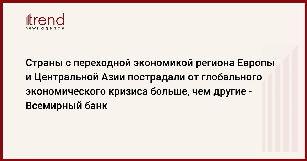 Страны с переходной экономикой региона Европы и Центральной Азии пострадали от глобального экономического кризиса больше, чем другие - Всемирный банк