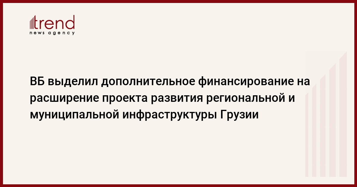 Совет директоров Всемирного банка (ВБ) одобрил для Грузии дополнительное финансирование в размере 45 миллионов долларов для реализации проекта развития региональной и муниципальной инфраструктуры, говорится в среду в официальном заявлении банка.