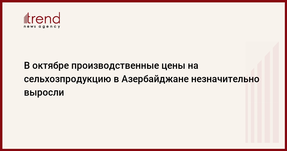 В октябре производственные цены на сельхозпродукцию в Азербайджане повысились на 0,9 процентов по сравнению с предыдущим месяцем, сказано в сообщении, опубликованном на сайте государственного комитета по статистике.