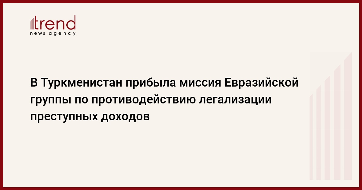 В Туркменистан прибыла миссия Евразийской группы по противодействию легализации преступных доходов и финансированию терроризма (ЕАГ), сообщает в среду официальный туркменский источник.