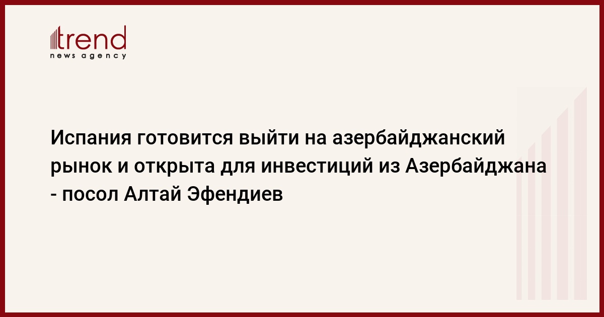 Для изучения возможностей вложения средств, посол считает, что, в частности, необходимо расширить участие Азербайджана в специализированных форумах и конференциях, проводимых в Испании. "Необходимо наладить оперативный взаимный обмен информацией о проводимых тендерах, о будущих проектах и планах развития", - сказал Trend Эфендиев.