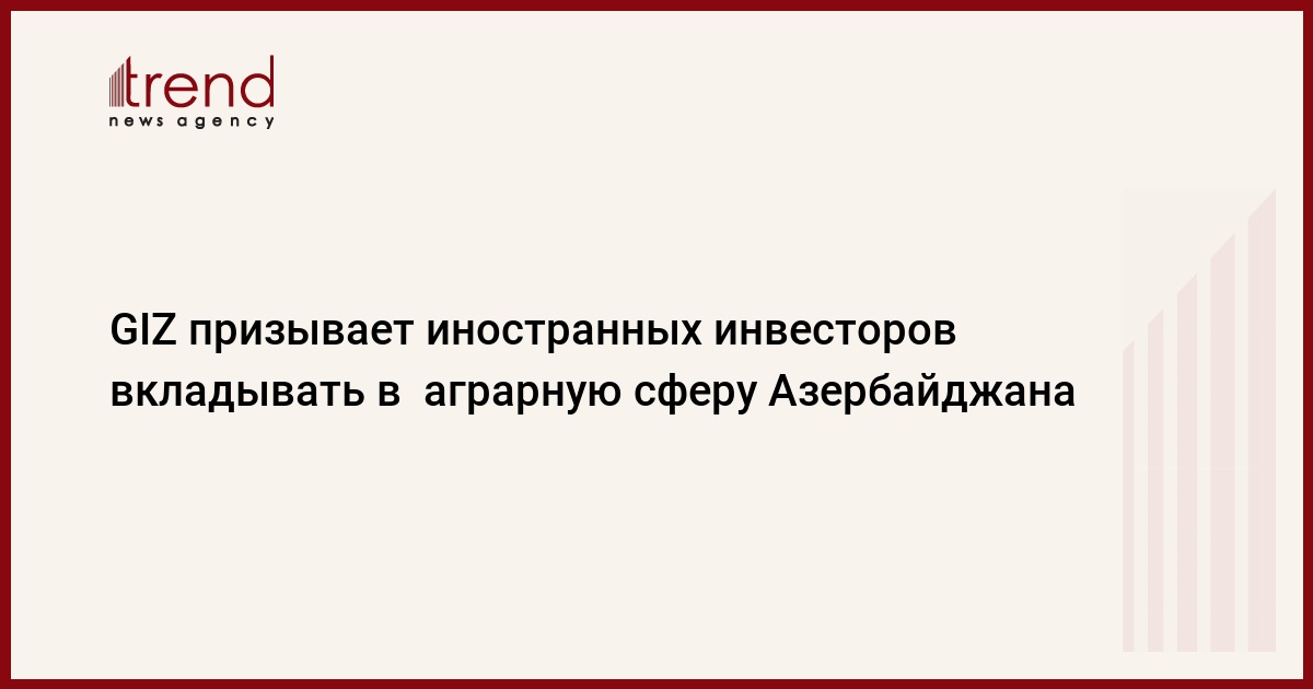 Иностранным инвесторам следует рассмотреть инвестиционные возможности Азербайджана в сельскозяйственной сфере, сказал в среду в Баку на саммите азербайджанских инвесторов - The Azerbaijan Investors' Summit 2011 заместитель директора немецкого бюро международного сотрудничества GIZ по Азербайджану Марк Бекманн (Marc Beckmann).