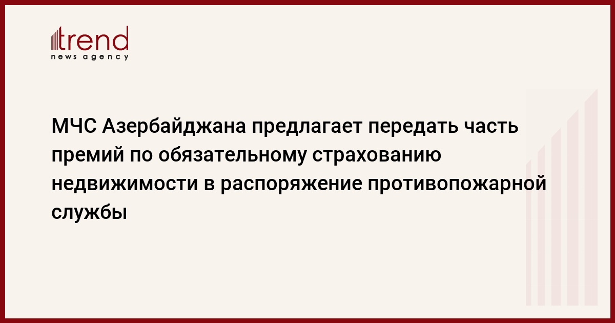 Министерство по чрезвычайным ситуациям (МЧС) Азербайджана предлагает внести изменения в законопроект "Об обязательных видах страхования", согласно которым органам противопожарной безопасности для осуществления мероприятий по защите от пожара будут выплачиваться пять процентов от страховых премий по обязательному страхованию недвижимости и гражданской ответственности, связанной с эксплуатацией недвижимости.