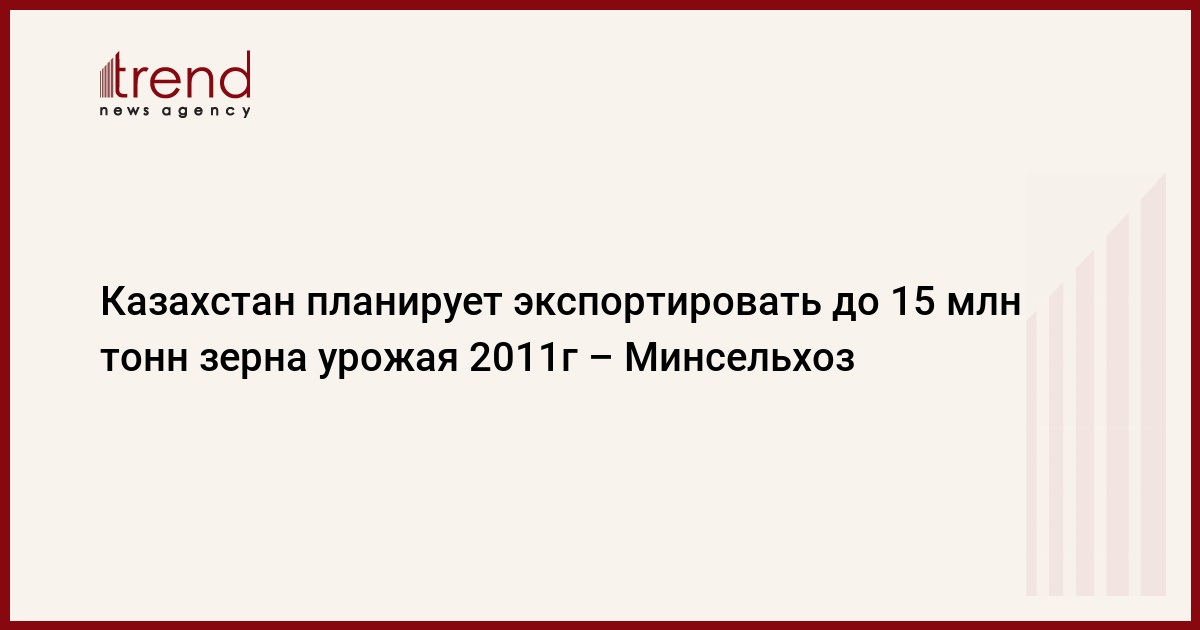 Казахстан планирует экспортировать на внешние рынки до 15 миллионов тонн зерна урожая 2011 года, сообщил вице-министр сельского хозяйства Марат Толибаев, пишет ИА Новости-Казахстан.