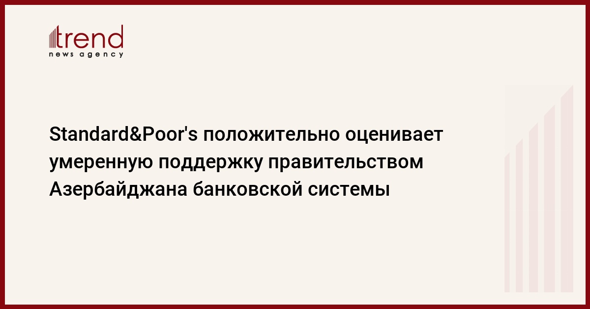 Standard & Poor's относит правительство Азербайджана к правительствам, готовым оказать поддержку национальному банковскому сектору и положительно оценивает умеренные успехи правительства в оказании поддержки банковской системе в сложной финансовой ситуации.