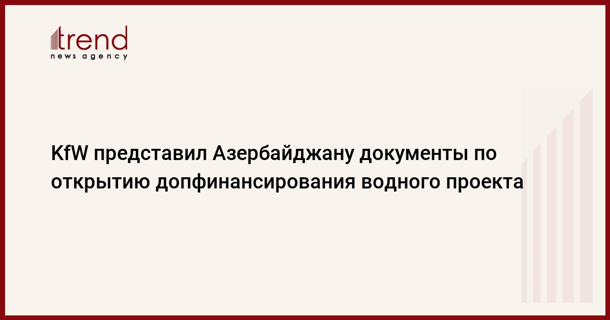 Германский банк развития KfW предоставил в правительство Азербайджана документы на утверждение для предоставления дополнительного финансирования в рамках проекта восстановления системы водоснабжения и канализации в городах Гянджа и Шеки, сказали Trend в пятницу в Бакинском офисе KfW.