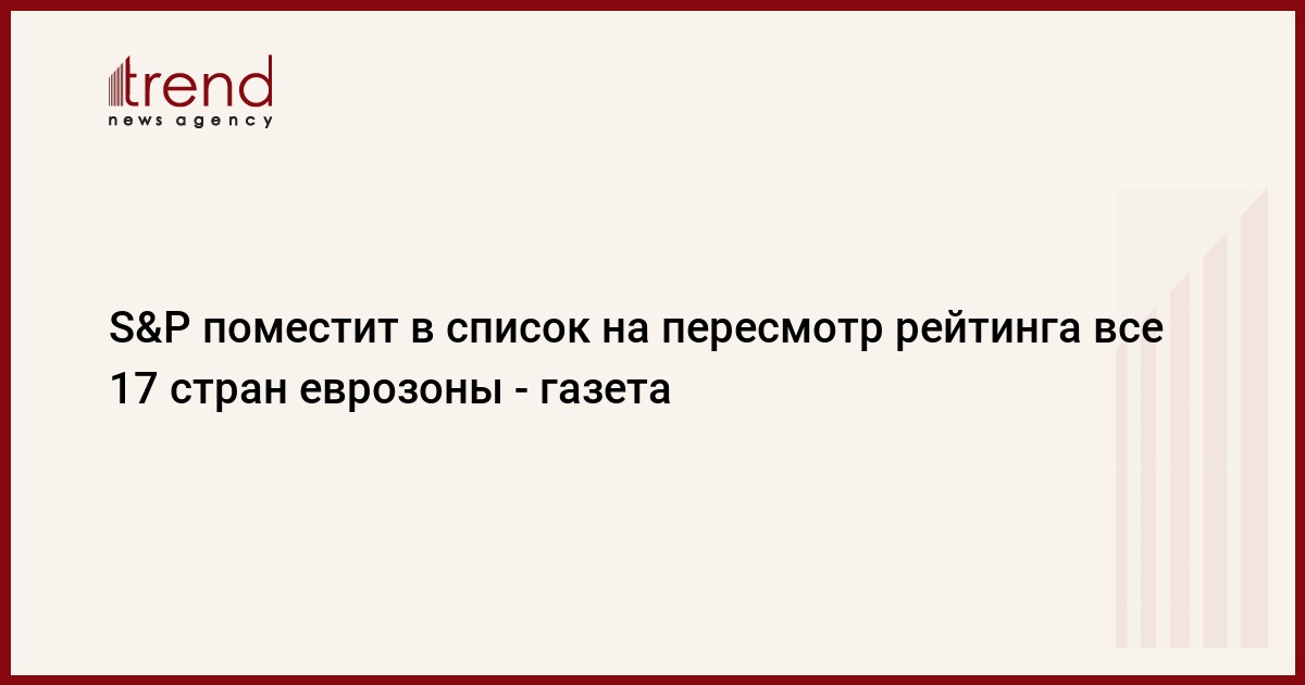 Международное рейтинговое агентство Standard & Poor's поместит в список для пересмотра кредитного рейтинга все 17 государств, входящие в еврозону, пишет во вторник газета Wall Street Journal со ссылкой на источники в S&P.
