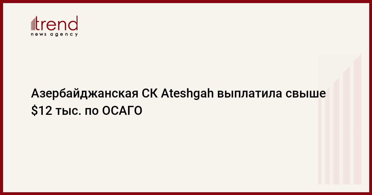 Один из лидеров страхового рынка Азербайджана СК "Ateshgah" осуществила страховую выплату по полису обязательного страхования гражданской ответственности владельцев автотранспортных средств (ОСАГО) в рамках нового закона "Об обязательных видах страхования".