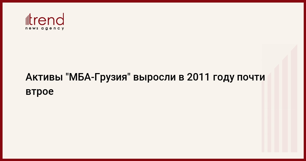 Активы АО "Международный банк Азербайджана - Грузия" (МБА-Грузия) увеличились за 2011 год в 2,8 раза и достигли 171,5 миллиона лари, говорится в сообщении банка, распространенном в четверг.