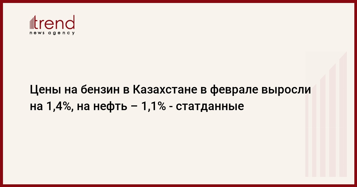 Цены на бензин в Казахстане в феврале 2012 года выросли на 1,4%, на нефть - 1,1%, сообщила в четверг пресс-служба агентства по статистике, пишет ИА Новости-Казахстан.