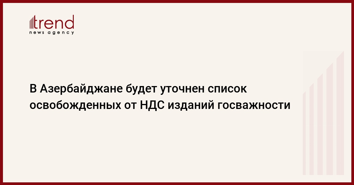 Министерство по налогам Азербайджана обратилось в Кабинет министров для составления списка изданий государственной важности, которые освобождены от уплаты налога на добавленную стоимость (НДС). Ставка НДС в Азербайджане составляет 18 процентов