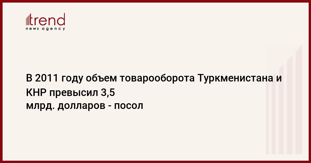 В области торгово-экономических отношений Туркменистан и Китай достигли уровня стратегического партнерства, в 2011 году объем двустороннего товарооборота превысил 3,5 млрд. долларов, сказал посол Туркменистана в Китае Гурбанназар Назаров, говорится в информации китайских СМИ.