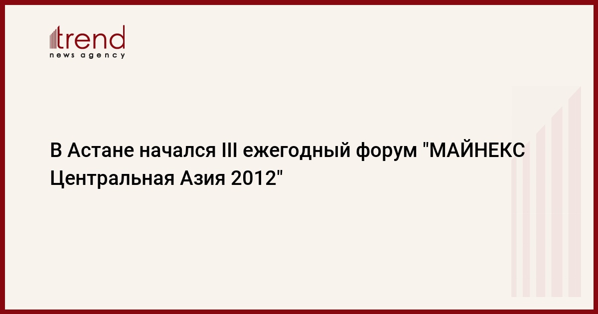 В Астане с 17 по 19 апреля текущего года пройдет III ежегодный форум "МАЙНЕКС Центральная Азия 2012", говорится во вторник в сообщении оргкомитета мероприятия.