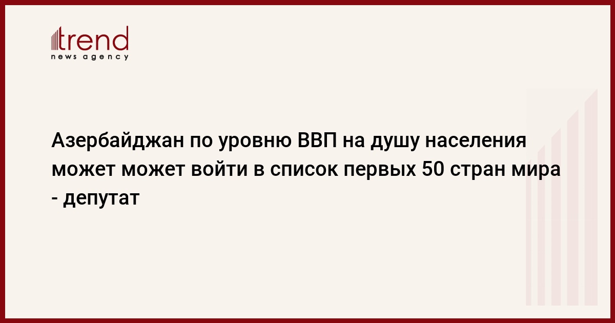 Азербайджан может стать второй постсоветской страной после Эстонии, вошедшей в список первых 50 стран мира по уровню ВВП на душу населения.