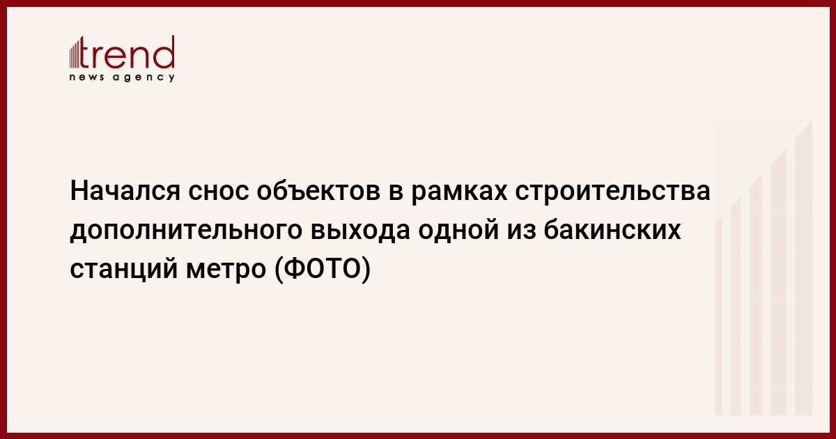 В зону строительства дополнительного выхода станции метро входят 18 объектов. Также в указанный период будет осуществлен снос объектов, входящих в зону строительства новой библиотеки Национальной академии наук Азербайджана.