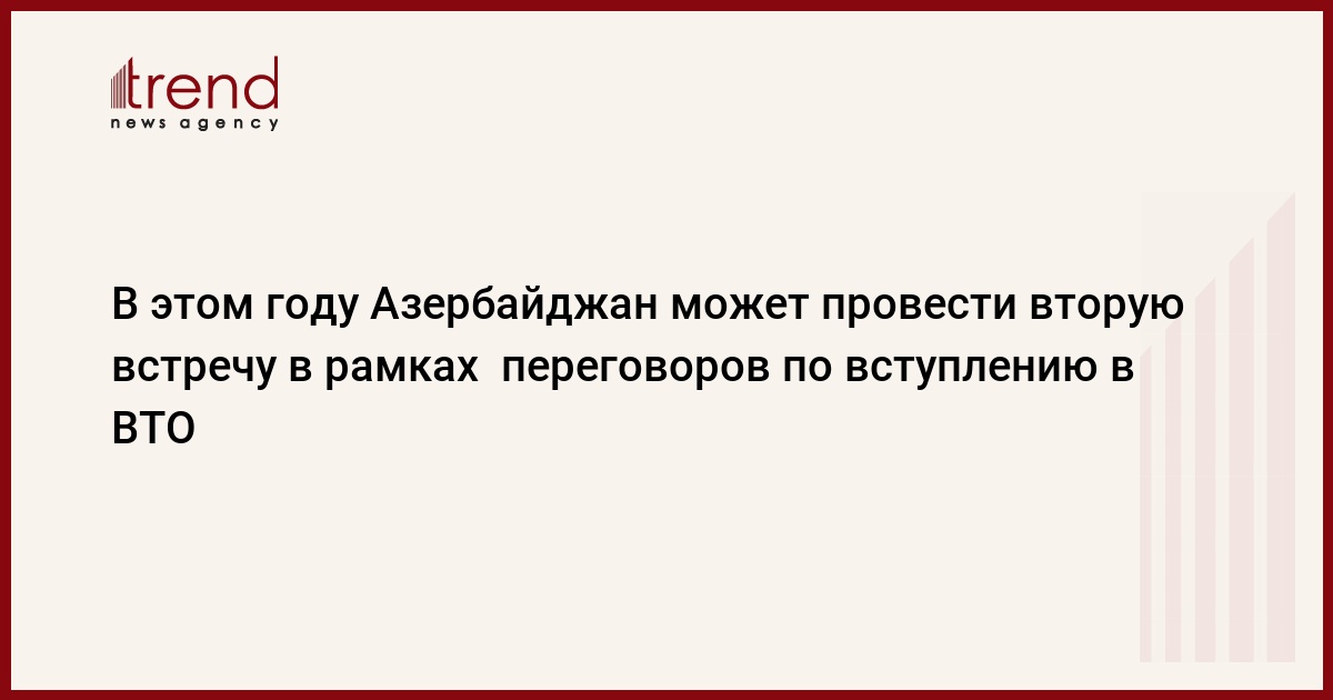 Правительство Азербайджана не исключает, что очередной, X раунд многосторонних переговоров по вступлению страны во Всемирную торговую организацию (ВТО) пройдет в июле.