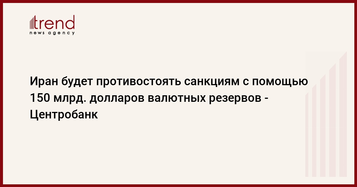 Глава Центрального банка Ирана Махмуд Бахмани заявил, что его страна будет противостоять экономическим санкциям Запада с помощью около 150 млрд долларов валютных резервов, сообщает в воскресенье агентство Mehr.