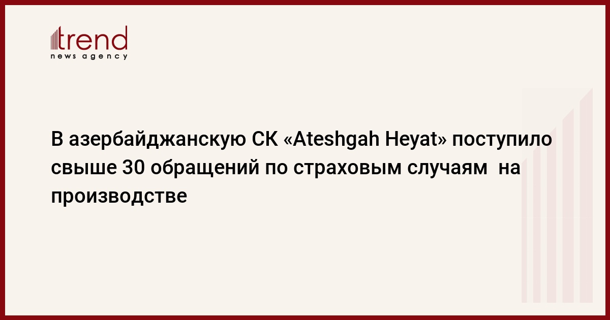 На сегодня СК "Ateshgah Heyat" поступило более трех десятков обращений страховых случаев по обязательному страхованию от несчастных случаев на производстве.