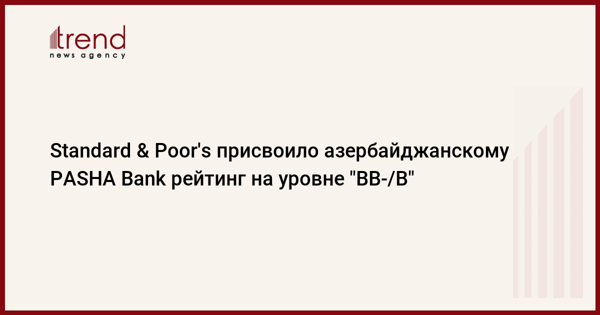 Служба кредитных рейтингов Standard & Poor's присвоила PASHA Bank долгосрочный и краткосрочный кредитные рейтинги контрагента "ВВ-/В" c прогнозом - "Стабильный".