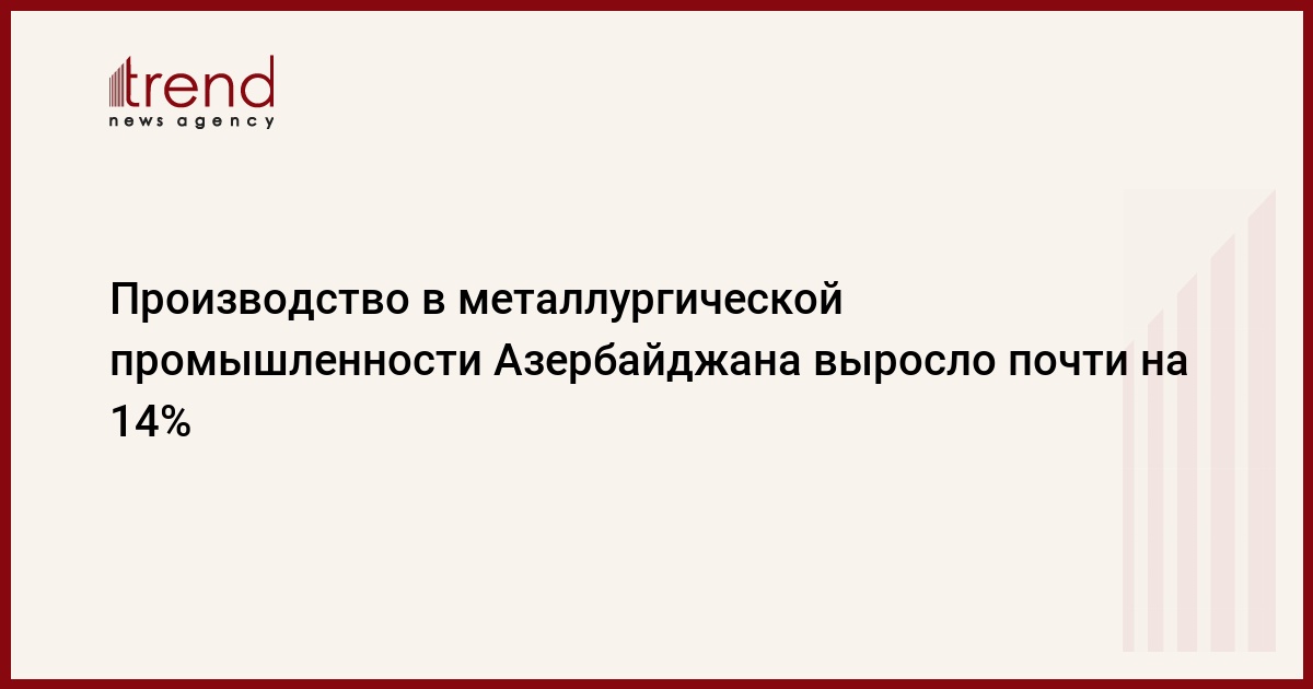 Объем производства в металлургической промышленности увеличился на 13,8 процента, выпуск готовой металлопродукции - на 76,2 процента.