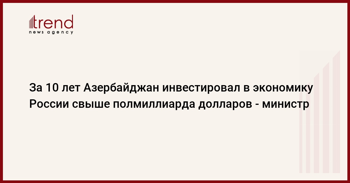 За последние десять лет Азербайджан инвестировал в экономику России порядка 563 миллионов долларов, сказал министр экономического развития Шахин Мустафаев в понедельник на встрече в Баку с губернатором Волгоградской области Российской Федерации Сергеем Боженовым.