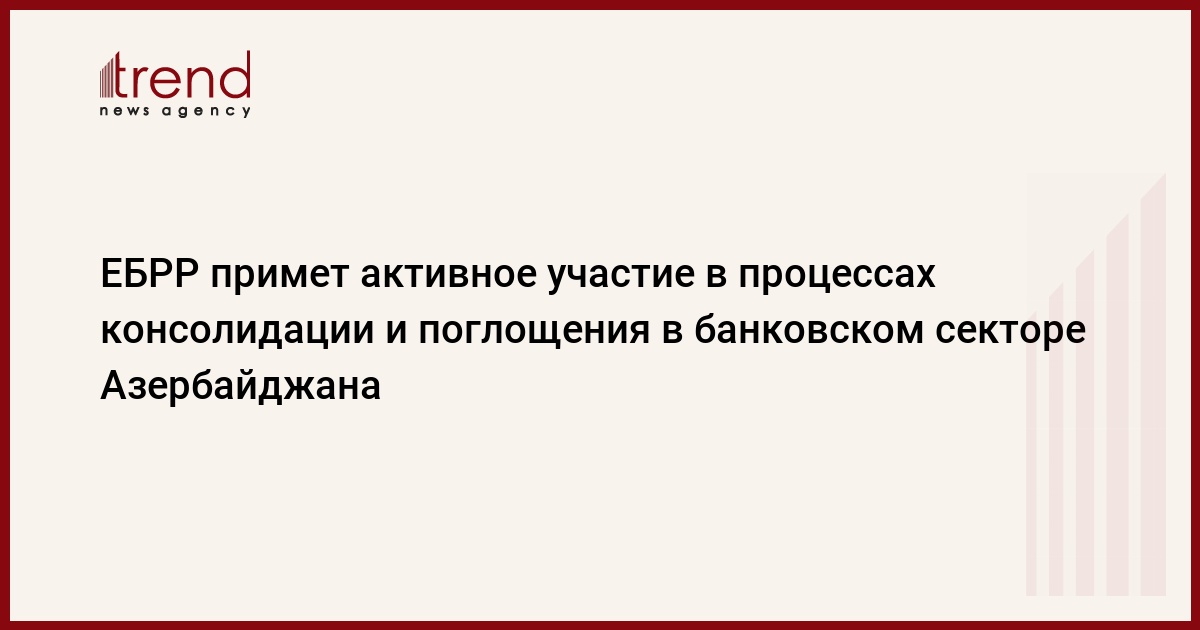 Европейский банк реконструкции и развития (ЕБРР) планирует принять активное участие в процессах консолидации и поглощения, которые ожидаются на банковском рынке Азербайджана в 2013 году. Об этом сказал журналистам в пятницу глава представительства ЕБРР в Азербайджане Нил Маккейн.