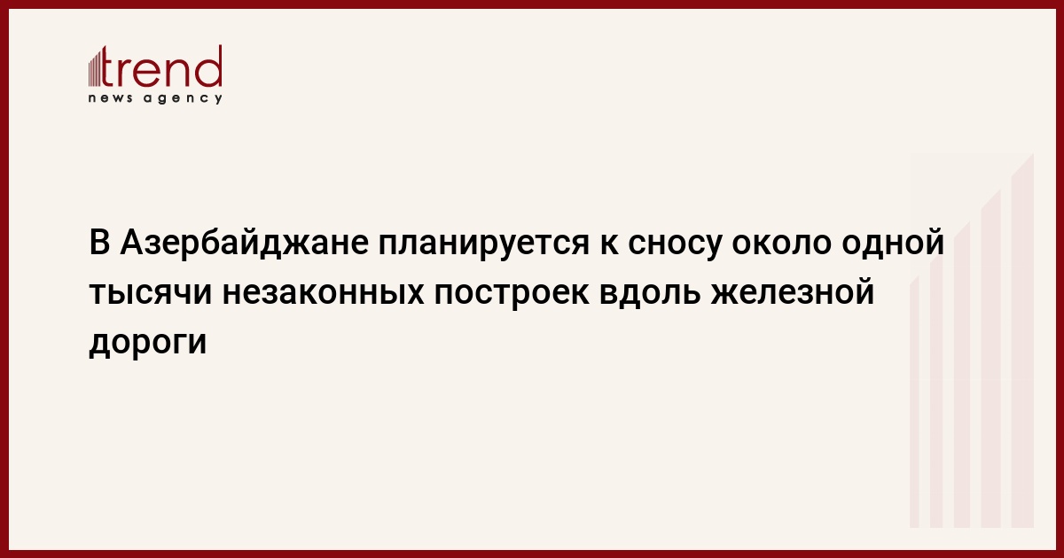ЗАО "Азербайджанские железные дороги" представило на рассмотрение правительства предложение о сносе около одной тысячи незаконных жилых и других построек вдоль железной дороги, сообщил в субботу журналистам глава ЗАО Ариф Аскеров.